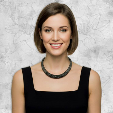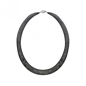 ❤ השרשרת מעוצבת מרשת שחורה בשילוב חרוזים שקופים נוצצים