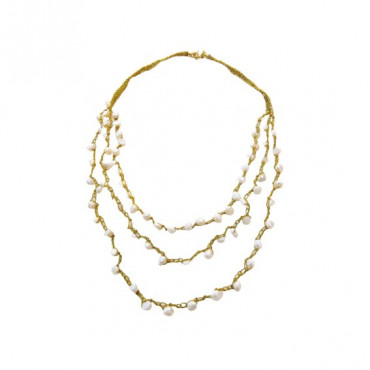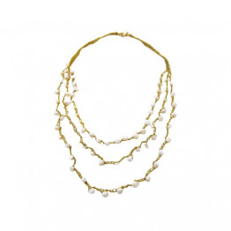 ❤ שרשרת סרוגה בשלוש שכבות בחוט דק בצבע זהב נוצץ בשילוב פניני מים