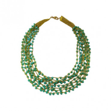 ❤ שרשרת סרוגה בשמונה שכבות בחוט דק בצבע זהב נוצץ בשילוב קריסטלים ירוקים