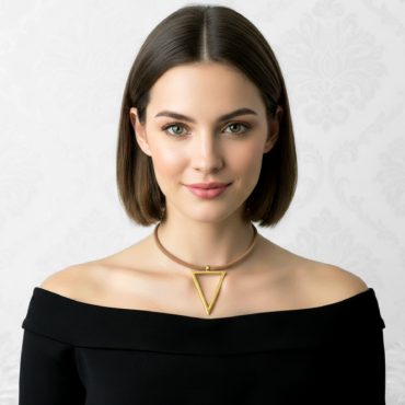❤ השרשרת מעוצבת מעור אמיתי בגוון קאמל בשילוב תליון משולש בציפוי זהב 24 קראט