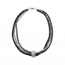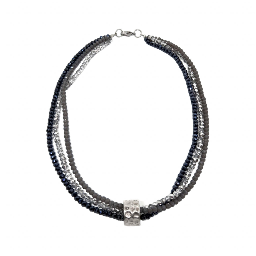 ❤ השרשרת מעוצבת משלוש שורות של קריסטלים נוצצים בגווני אפור בשילוב טבעת מרוקעת בציפוי כסף 925
