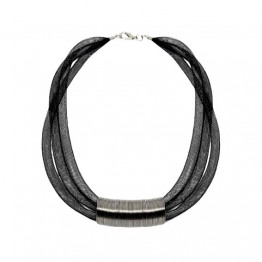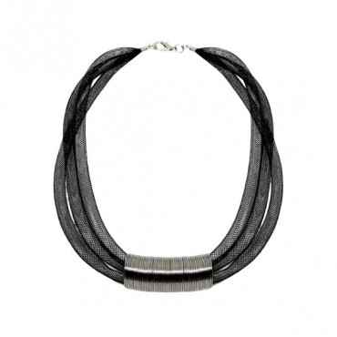 ❤ השרשרת מעוצבת משלוש רשתות שחורות דקות בשילוב סליל מתכת