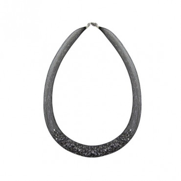 ❤ השרשרת מעוצבת מרשת שחורה בשילוב חרוזים מוכספים נוצצים