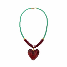 שרשרת חרוזים ירוקים ותליון לב אדום