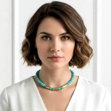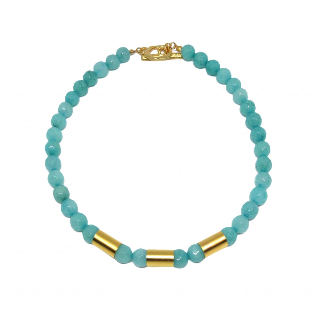 ❤ השרשרת מעוצבת מחרוזי אמזונייט וצינורות בציפוי זהב 24 קראט