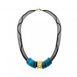 שרשרת רשת שחורה בשילוב צדפים כחולים וחרוז מתכת מרובע