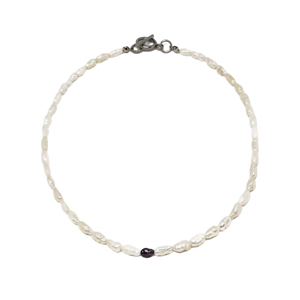 ❤ השרשרת מעוצבת מפניני מים מתוקים בגוון טבעי בשילוב פנינה אחת בצבע אפור