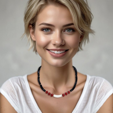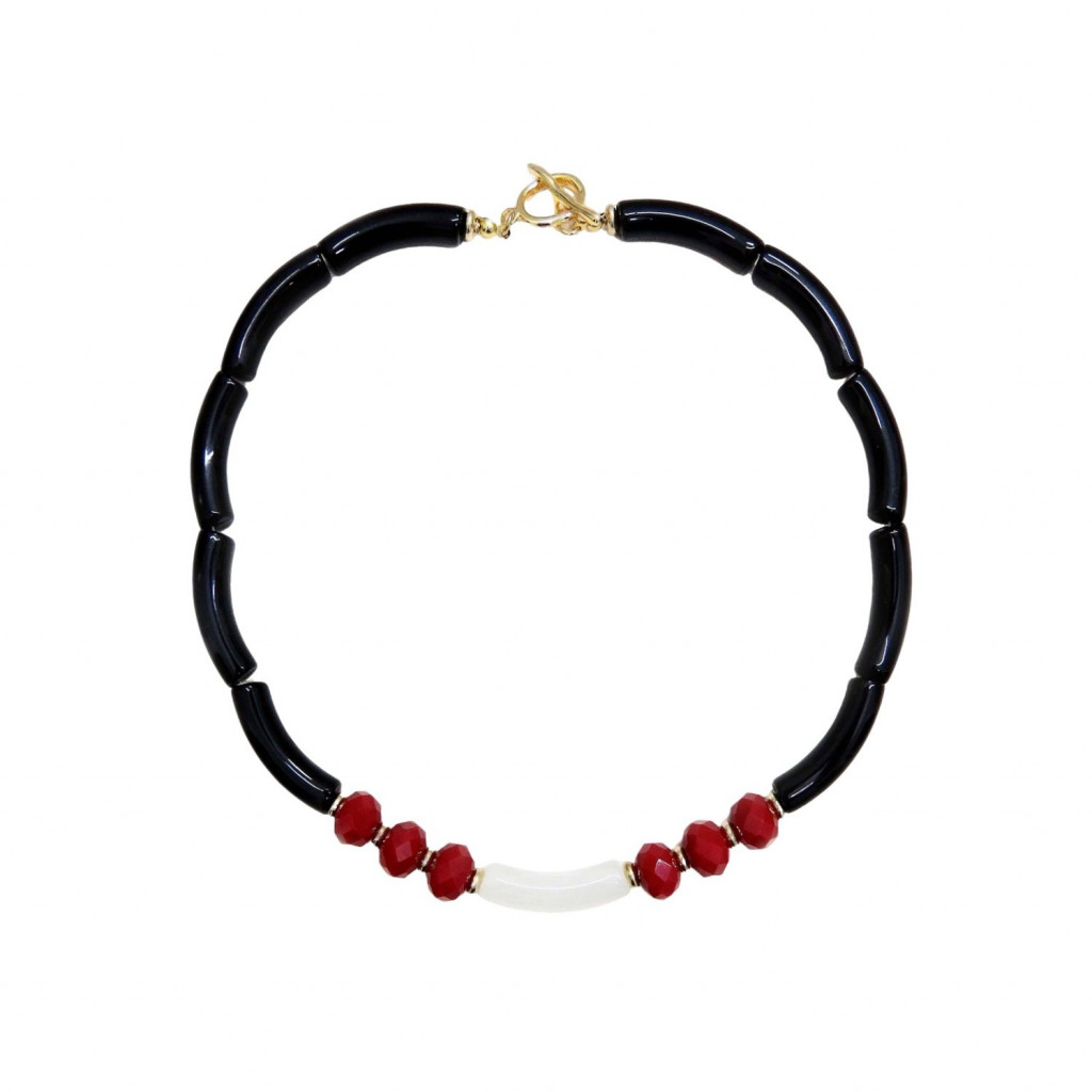 שרשרת חרוזי צינורות מעוקלים אקריליק שחורים וקריסטלים בגוון בורדו