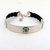 צמיד מגן דוד על פלטת כסף בשילוב עור תכשיט יודאיקה– לאישה