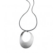 שרשרת עור אמיתי אפור ותליון גדול בציפוי כסף 925