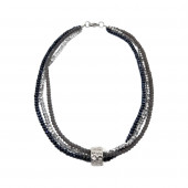 שרשרת קריסטלים בגווני אפור וטבעת בציפוי כסף 925