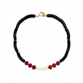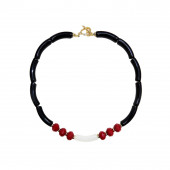 שרשרת חרוזי צינורות מעוקלים אקריליק שחורים וקריסטלים בגוון בורדו